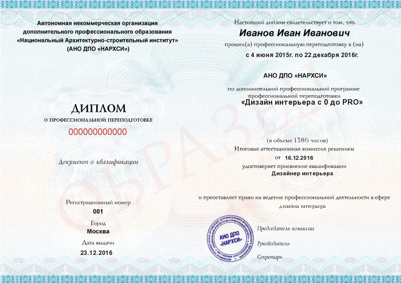 Учебный план программы профессиональной переподготовки «Дизайн интерьера с 0 до PRO» с присвоением квалификации «Дизайнер интерьера»
