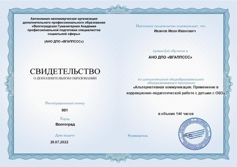 Заполненные образцы документов можно найти в описании конкретных образовательных программ на сайте АНО ДПО «ВГАППССС», а также на странице «Лицензия. Документы».