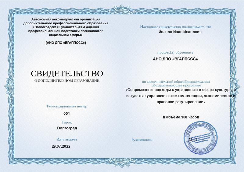 Повысить квалификацию – значит получить новые навыки и компетенции. Курс завершается выдачей официального удостоверения, где указывается ФИО выпускника, название программы, сроки обучения и продолжительность программы.